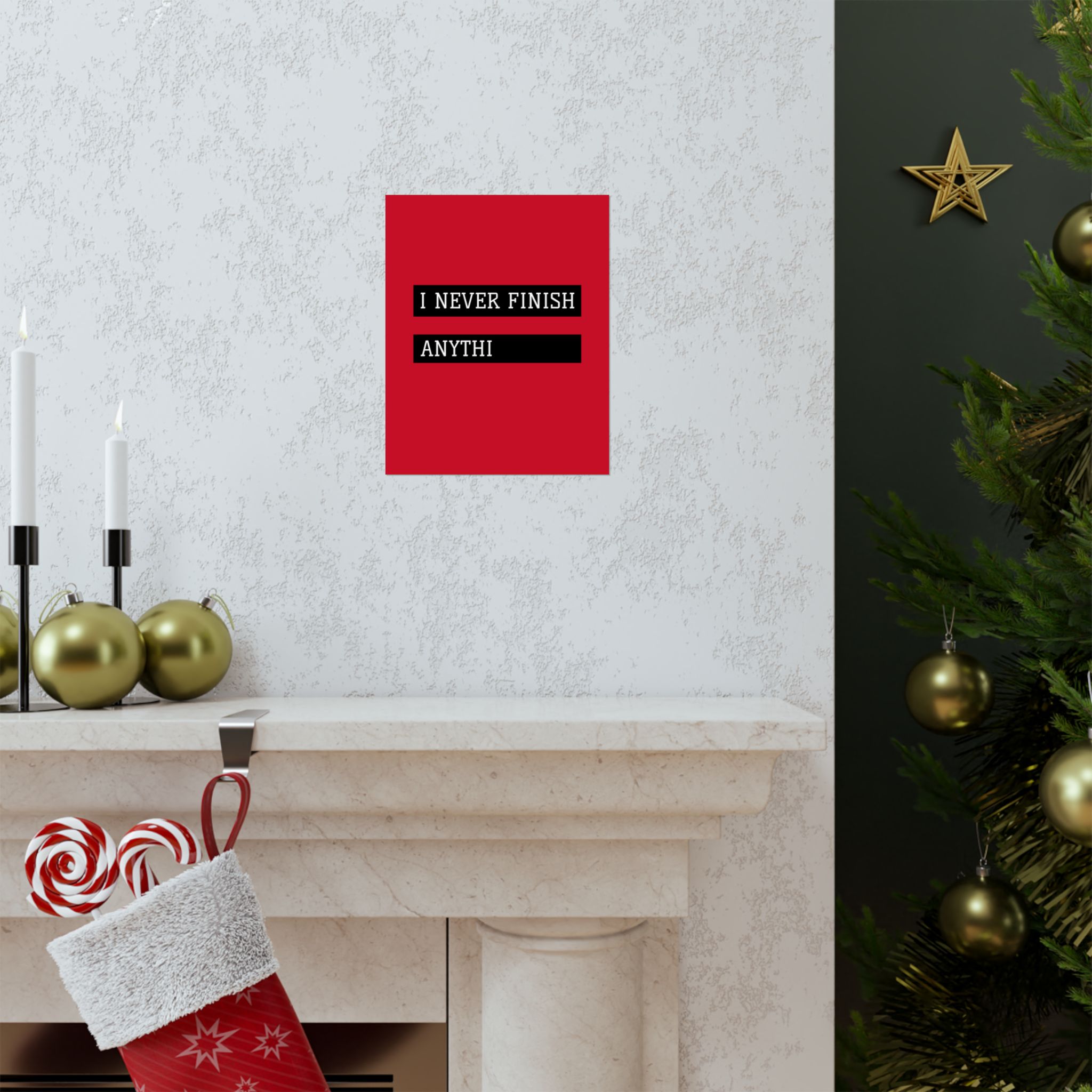 Minimal, ironic, and intentionally unfinished, the I Never Finish Anythi Matte Vertical Poster transforms an incomplete sentence into modern visual humor. The cut-off text is the statement—perfect for those who appreciate dry wit, minimalist design, and subtle comedy.